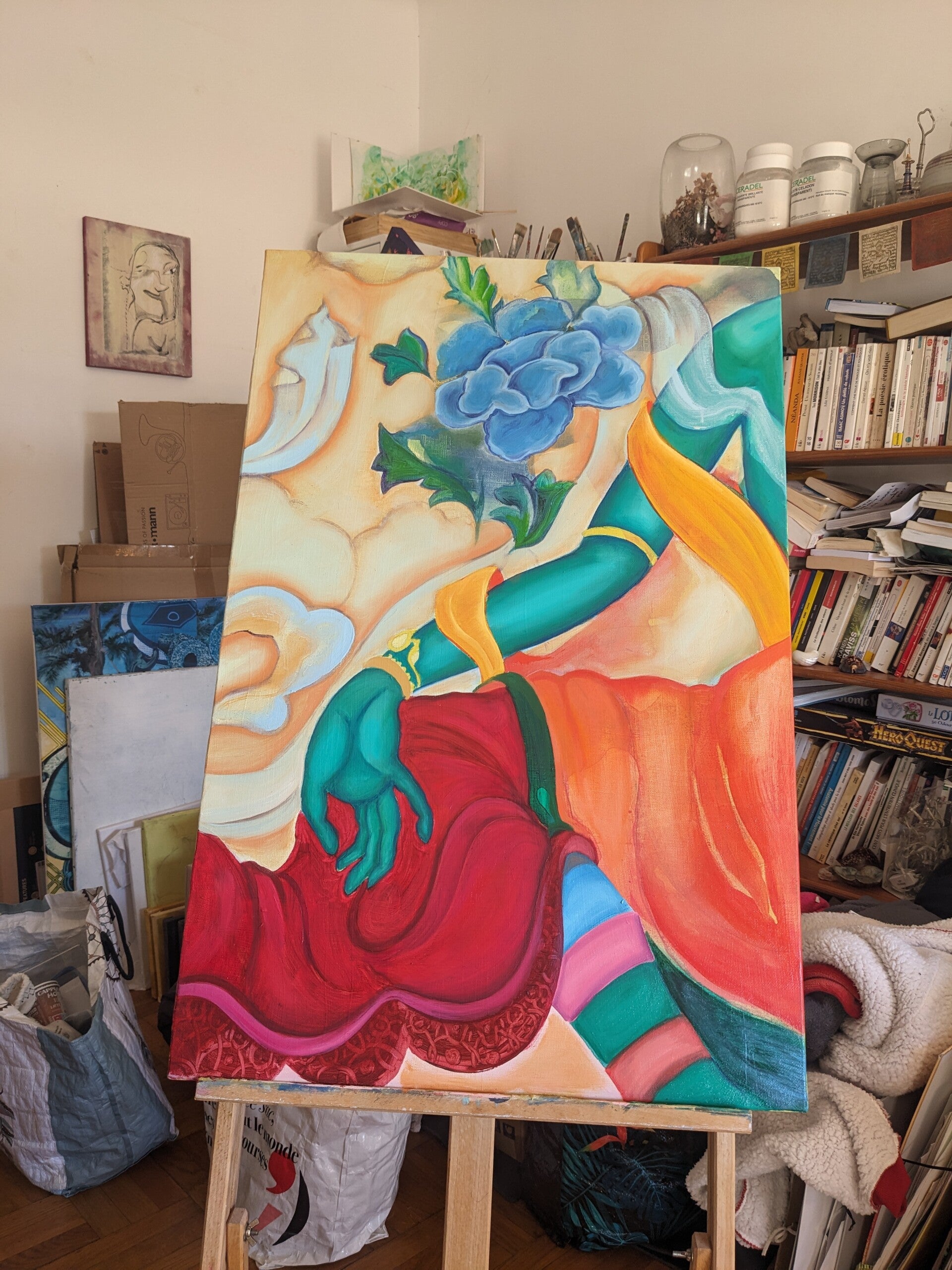 J’aime ressentir la présence des fleurs : leur éclat, leur sensualité, la richesse de leurs nuances, et la retranscrire dans mes dessins et mes tableaux.